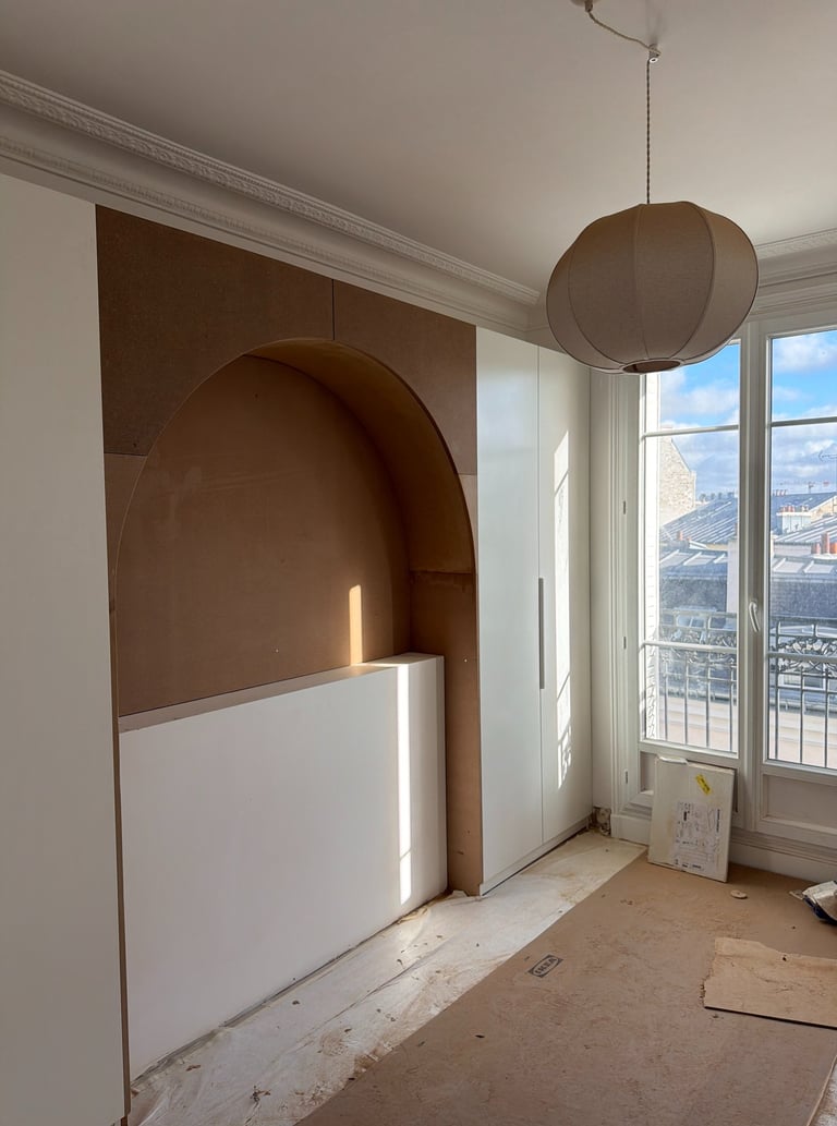 Réalisation d'une alcôve sur mesure avec rangement