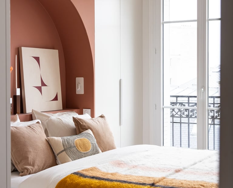 Lit intégré dans une alcôve architecturale sur mesure